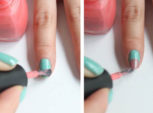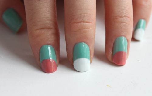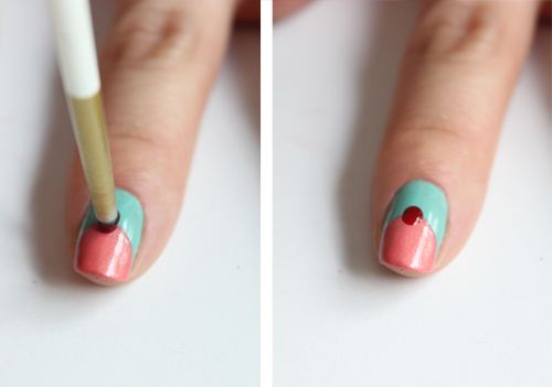 Then take your ice cream colour and paint a “scoop at the tip of your nail. You should be able to just swoop over the tip of the nail and get a good circle shape. This might require a couple of coats. Just be sure to let the polish dry between coats.