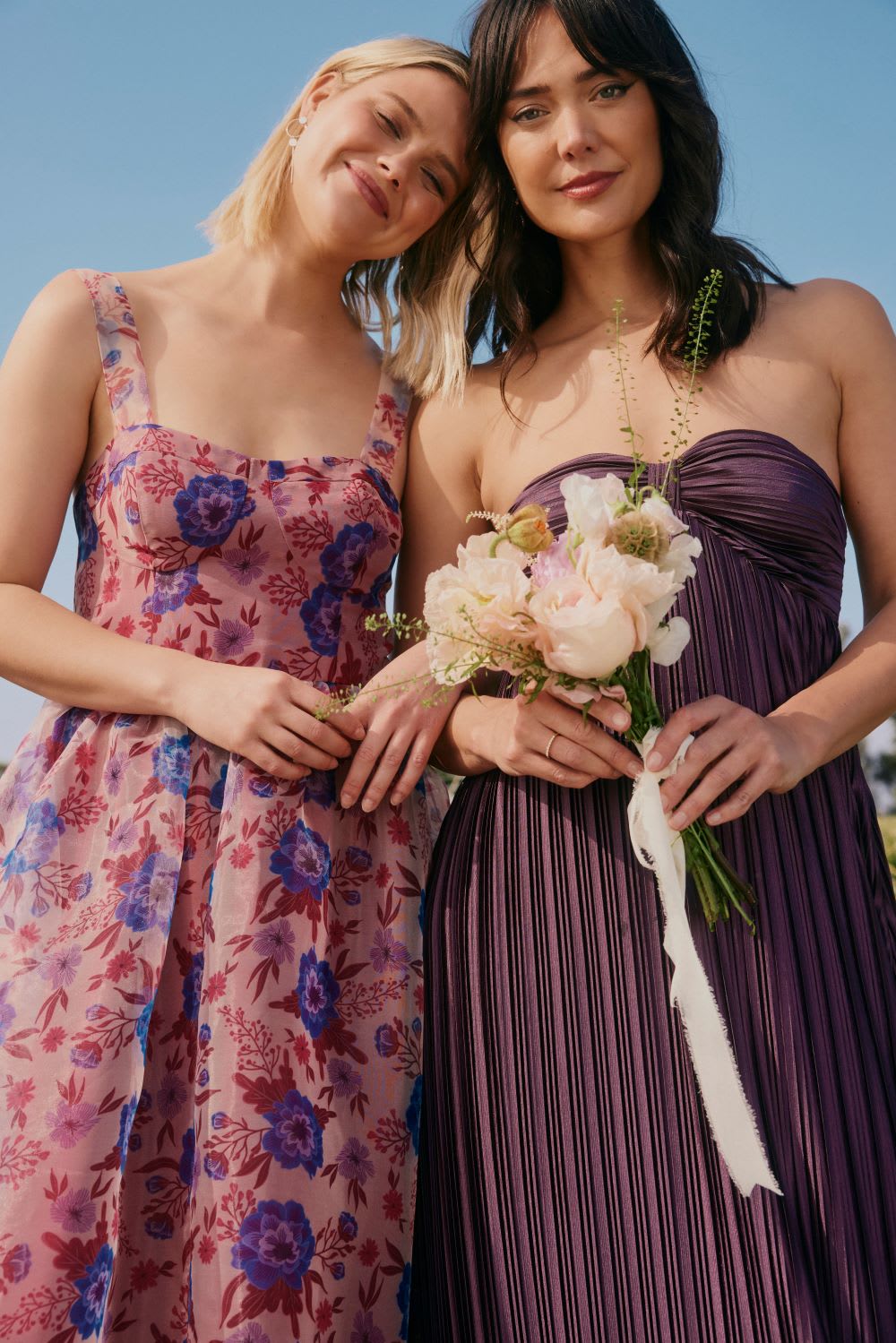 Once you’ve picked your palette, you and your bridesmaids can look for dresses that keep within that palette so that everybody looks unique but cohesive. You can expand on this option by sticking to the same colors but picking prints in different sizes, styles, and scales.