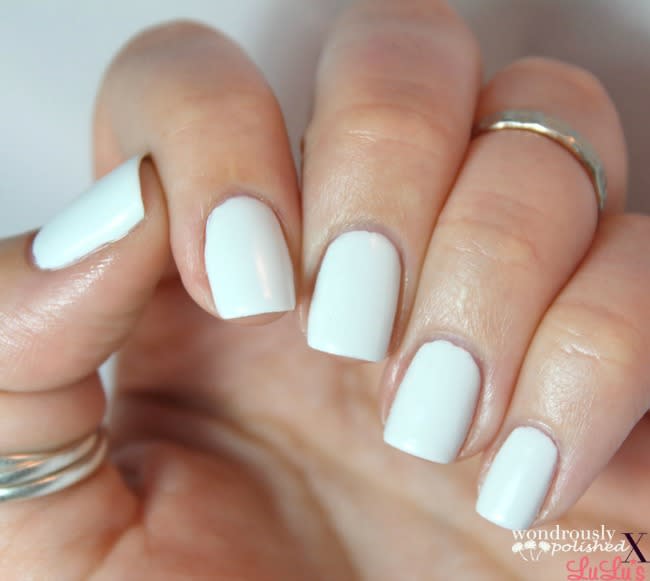 - Begin by painting your nails a solid base color. I chose OPI’s My Boyfriend Scales Walls. Wait for the polish to dry completely.