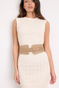 Billini Frankie Beige Suede Wide Belt