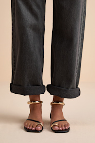 Lulus Jamen Gold Strappy Kitten Heel Slide Sandals