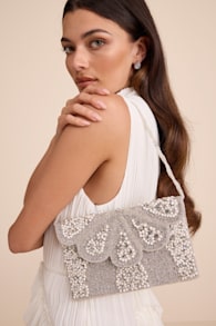 Lulus Mabel Silver Beaded Rhinestone Crossbody Clutch