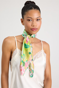 Samaria Green Multi Floral Satin Scarf