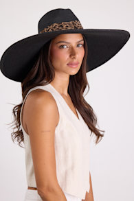 San Diego Hat Co. Snappy Black Leopard Straw Sun Hat