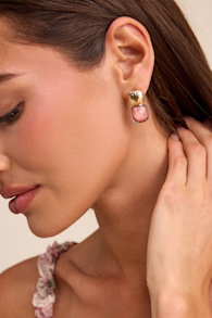 Lulus Malona Pink Rhinestone Drop Earrings