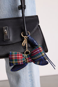 Shiraleah Plaid Navy Bow Key Ring Bag Charm