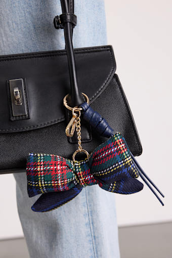 Shiraleah Plaid Navy Bow Key Ring Bag Charm