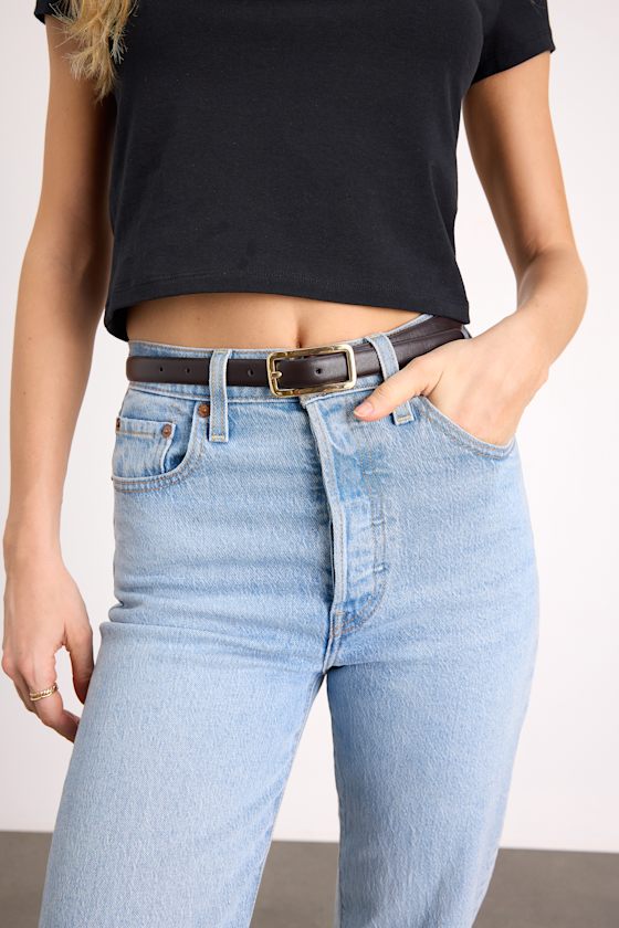 This sleek, must-have accessory by Billini was destined to complete any outfit in peak chic fashion. Smooth faux leather shapes the skinny silhouette, featuring a slender rectangular buckle that can be adjusted to your liking. From trousers to high-rise cutoffs, this belt makes any look worthy of a compliment or two.