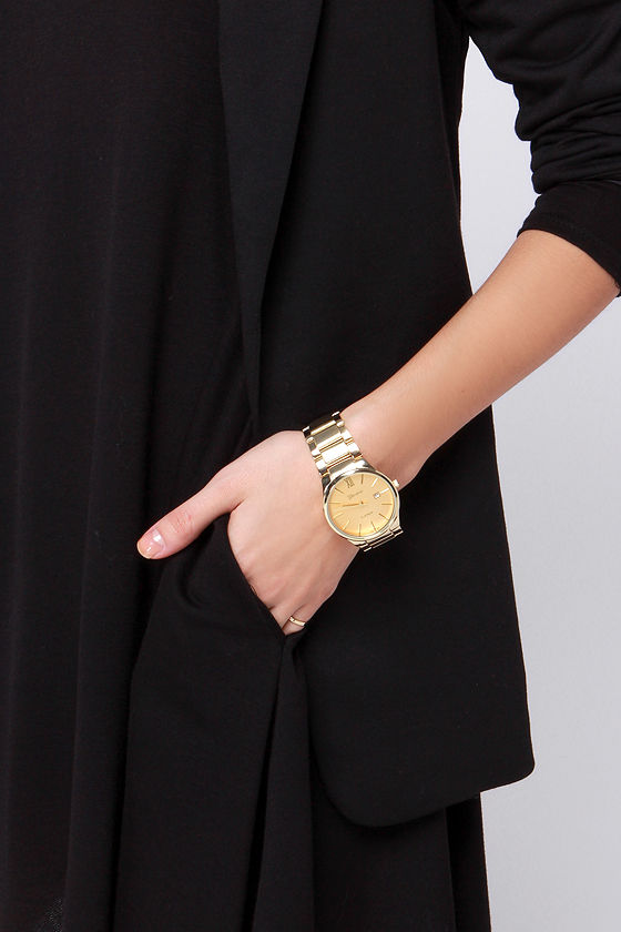 Just in the nick of time, the Ahead of Schedule Gold Watch is here to add a bit of dressy sophistication to your look! With a cool oversized design, the round gold face of this timepiece dazzles in a shiny gold, complete with matching gold hands, time markers and a small date window. Brushed gold links form a classic band. Face measures 1.5” in diameter, plus a 6.5” band with folding clasp closure. Stainless steel backing. Man made materials.