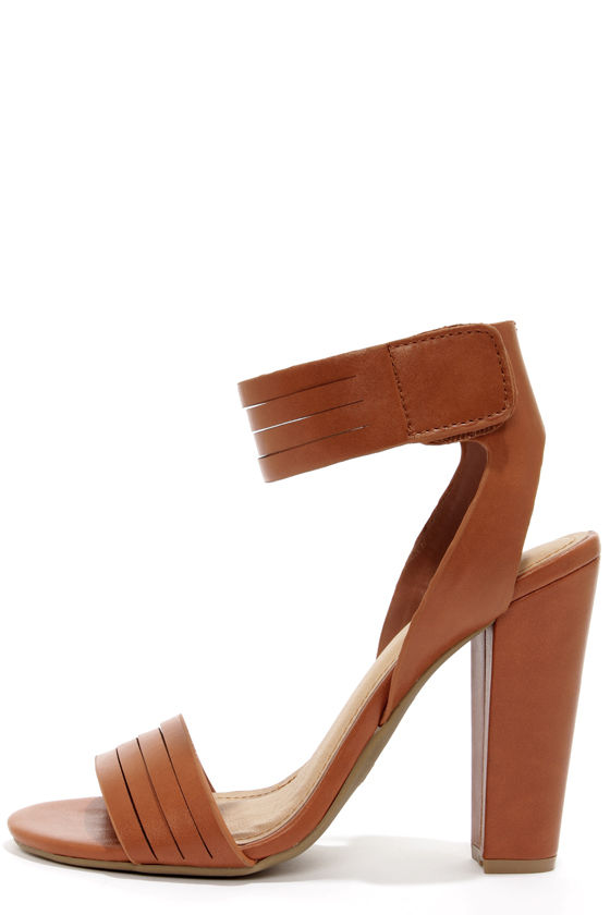 Prepare to be wooed by the artful ankle strap and alluring heel on the Bamboo Senza 06 Chestnut Ankle Strap Heels! Chestnut brown vegan leather creates a chic toe strap that's split into four smaller bands to match the sexy ankle strap with VELCRO® brand fasteners. A heel cutout and a 4.5" chunky wrapped heel rest on a single sole. Cushioned insole. Non-skid rubber sole. Available in whole and half sizes. Measurements are for a size 6. All vegan friendly, man made materials.