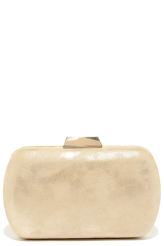Creating a sophisticated style just got easy! The Before Time Gold Clutch is elegant beyond belief with a soft, textured exterior that creates a metallic sheen. Opening the gold clasp closure unveils a black fabric-lined interior with handy accordion sides. Carry as a clutch, or attach the 49" long gold chain strap.