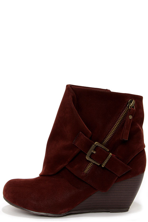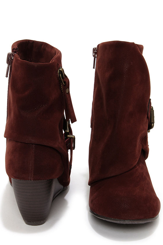 Blowfish Bilocate Burgundy Fawn Belted Wedge Boots