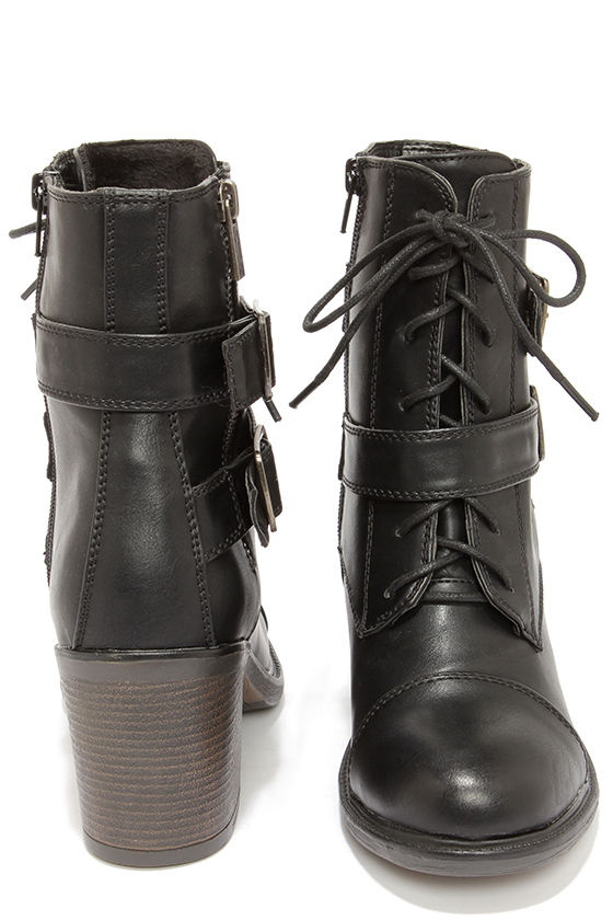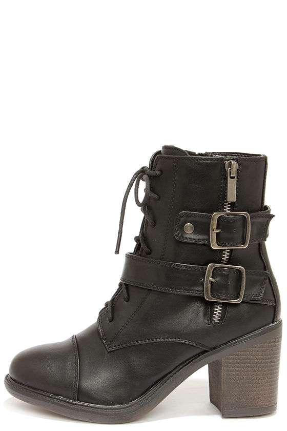 If you want style on your toes, and a smile beneath your nose, grab the Buckleby Black Heeled Mid-Calf Boots to stay on-trend and happy! These black vegan leather boots have a round capped toe upper with a lace-up front panel. Two straps start at the black side zipper, and wrap around to buckle above a decorative gunmetal zipper. Sole measures 0.5" at the toe, with a 3" block heel. Lightly cushioned insole. Nonskid rubber sole. Available in whole and half sizes. Measurements are for a size 6. All vegan friendly, man made materials.