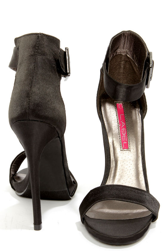 C Label Olive 1B Black Satin Ankle Strap Heels