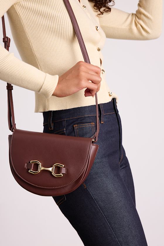This lil' vegan leather crossbody is ready to strut the city streets, carrying all your necessities with ease thanks to a surprisingly roomy interior. The half-circle silhouette features a fold-over flap adorned with a classic horsebit accent and a hidden magnetic closure underneath. An internal zipper pocket offers optimal organization, while an adjustable crossbody strap allows for hands-free wear.
