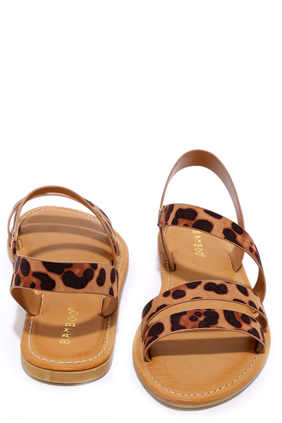 After of a night of dancing, keep the party going by slipping on your Fiesta Forever Leopard Print Sandals! These fierce vegan leather sandals have brown and black leopard print straps that cross up to an asymmetrical quarter strap (with a bit of elastic).
