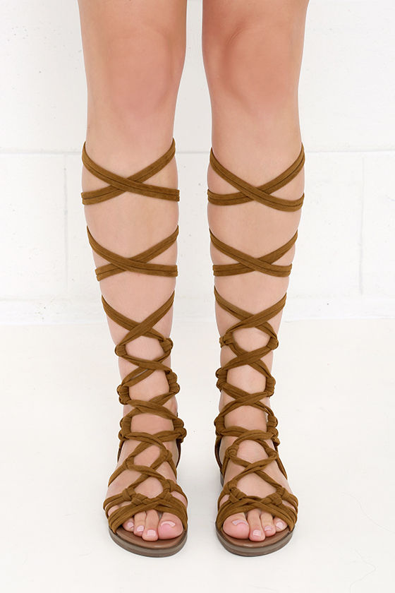 First Empress-ion Tan Suede Lace-Up Gladiator Sandals