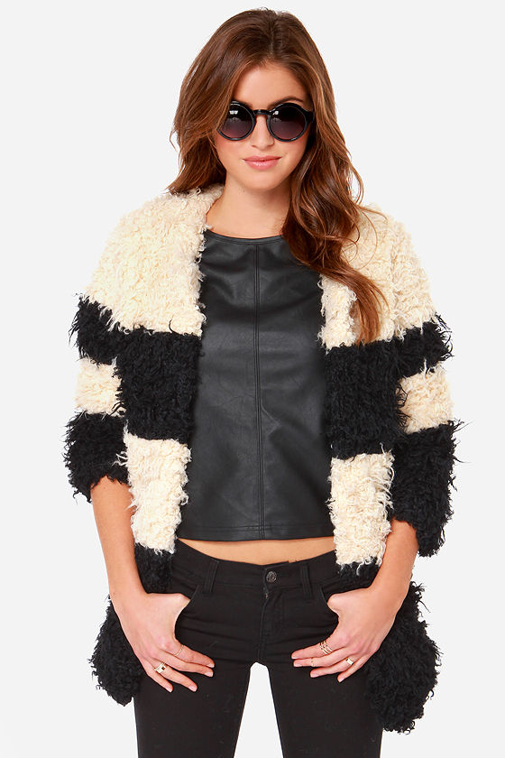 Fuzz Up with That Black and Cream Faux Fur Coat