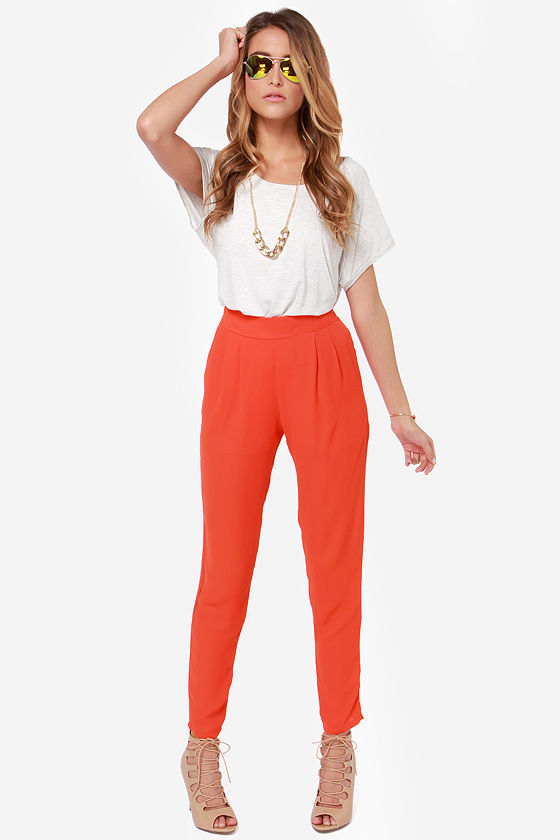 Fashion is a full-time job, so make it count with the Give It Your All Red Pants! A high-rise banded waist flatters your shape above a couple of pleats that assist in the slouchy look you adore, with woven red fabric diving down tapered pant legs. Front diagonal pockets. Hidden side zipper. Unlined. Model is 5'8" and is wearing a size small. 100% Polyester. Hand Wash Cold.