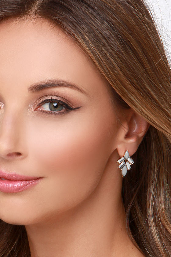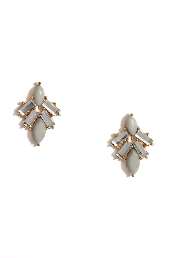 Guilty Treasure Grey Rhinestone Earrings