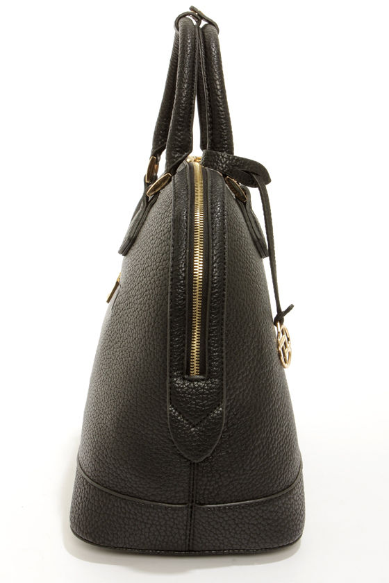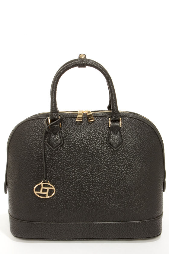 Your search for the perfect handbag is over with the chic style of the Just What the Doctor Ordered Black Purse! Supple black vegan leather with a pebbled texture forms a sturdy doctor bag style exterior accented by shiny gold hardware. Back zipper pocket. Unzip this flat-bottomed purse to reveal a roomy interior with a printed fabric lining, as well as four additional interior pockets. Twin tote handles have a 4.5" drop, plus a snapping closure and dangling gold charm. Adjustable shoulder strap included. Purse measures 14" wide, 11.5" tall, and 7" deep. Shell: 100% PU. Polyester lining.