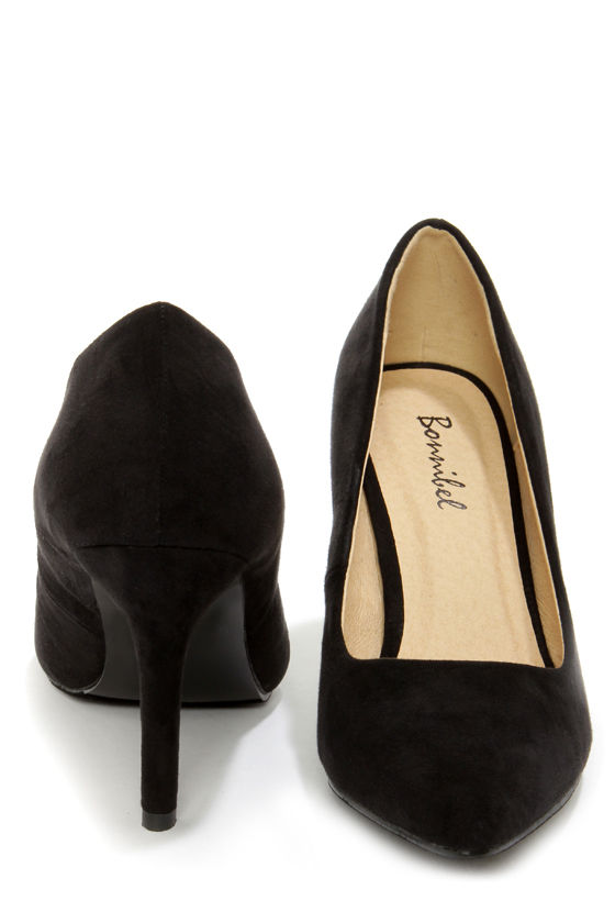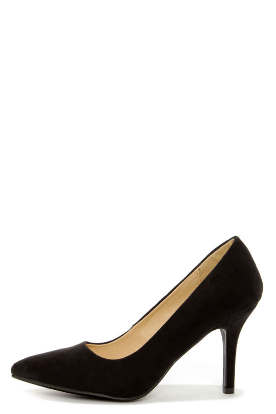 The "Karla" is the star of the evening with not only a beautiful vegan suede upper, but a very foot-friendly 3.5" heel (including rubber tip)! The Karla 5 Black Suede Pointed High Heels are the perfect partner for that hard-to-match outfit, sporting a classic pump shape with a pointed toe. Cushioned insole. Felted rubber sole has non-skid markings. Available in whole and half sizes. Measurements are for a size 6. All vegan friendly, man made materials.