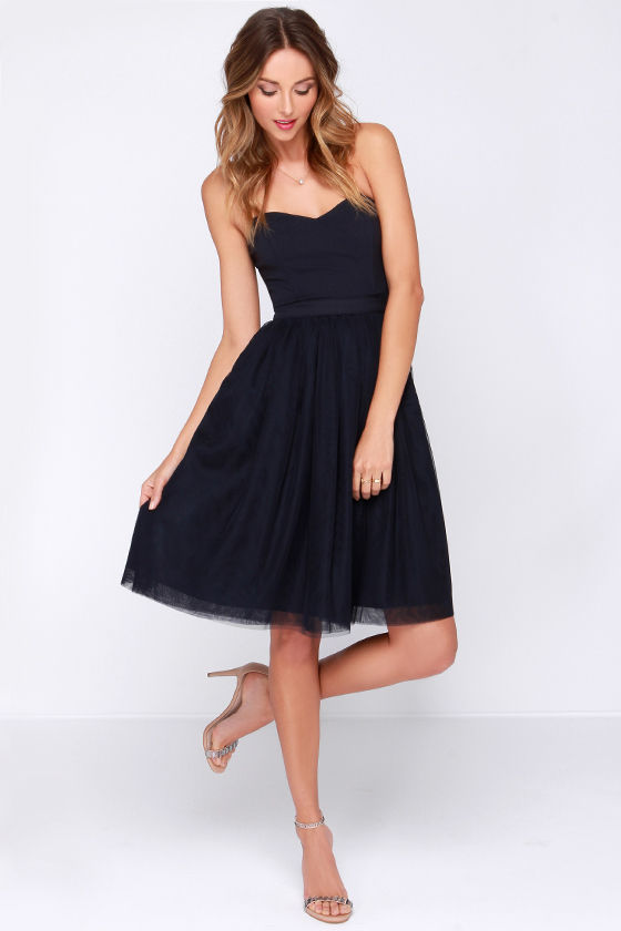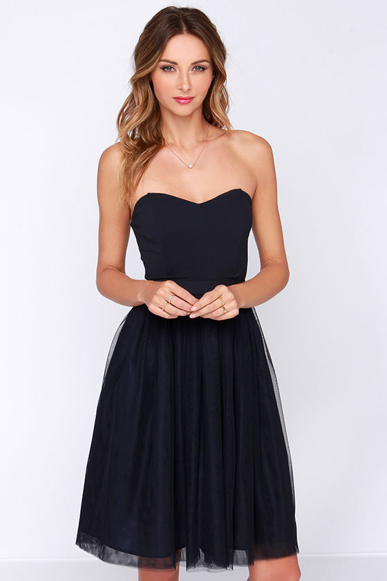 LULUS Exclusive Ballet Liaisons Strapless Navy Blue Dress