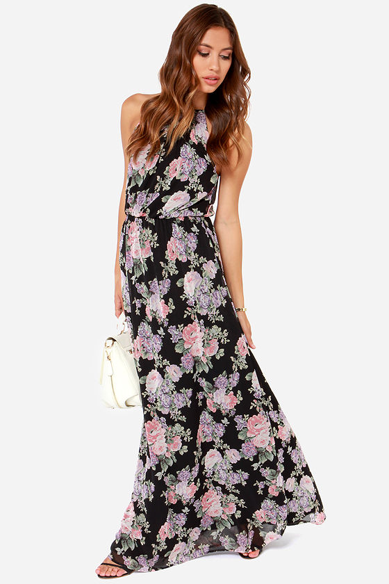 LULUS Exclusive Length of Love Floral Print Black Maxi Dress
