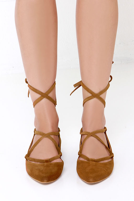 MTNG 94161 Monica Serraje Cuero Tan Suede Ankle Wrap Flats