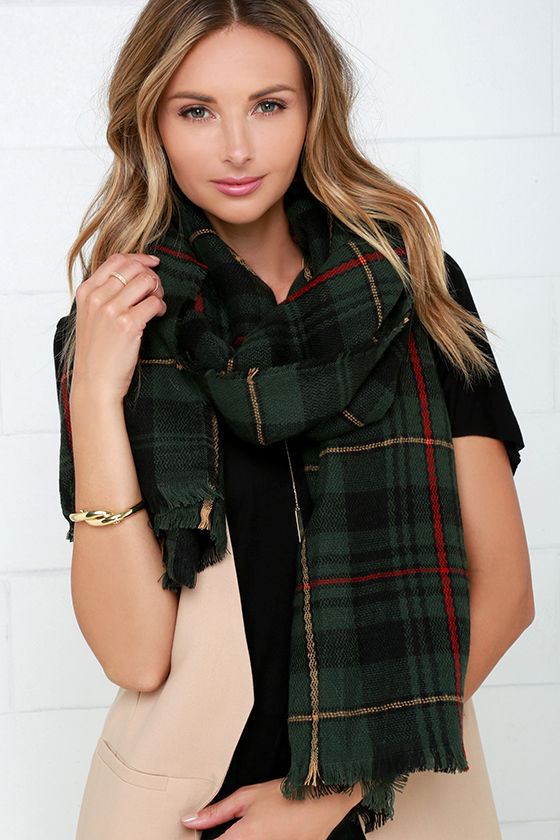 You'll fondly reminisce on all the fun you've had in the Plaid a Good Time Green Plaid Scarf! Soft, woven fabric boasts a classic plaid pattern in shades of green, black, red, and yellow as it shapes an cozy, blanket scarf ending in fringe hems. Scarf measures 38" wide and 80" long. 30% Wool, 70% Acrylic. Hand Wash Cold.