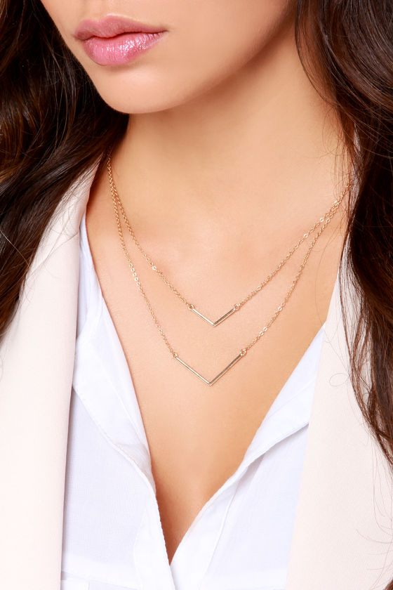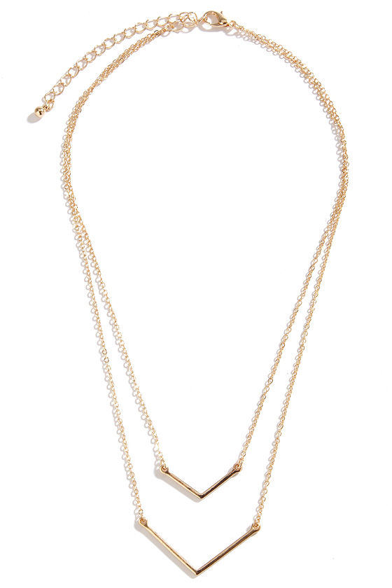 Just like close siblings, these two little chevron-shaped bars stick close together! The Pointed Sisters Gold Layered Necklace descends into two simple gold chains with pointed charms. Necklace measures 15" around plus a 3" extender chain.