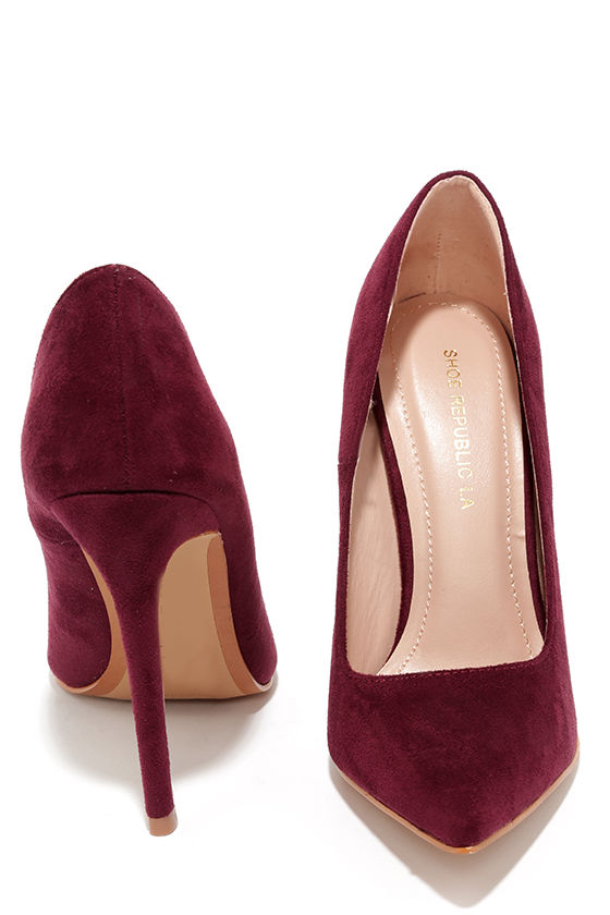 If there's one high heel that makes a great showing in or out of the office, it's the Precisely Right Wine Red Suede Pointed Pumps! The softest vegan suede covers a pointed-toe upper.