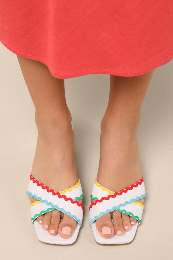 Principessa White Rick Rack Trim Low Heel Slide Sandals