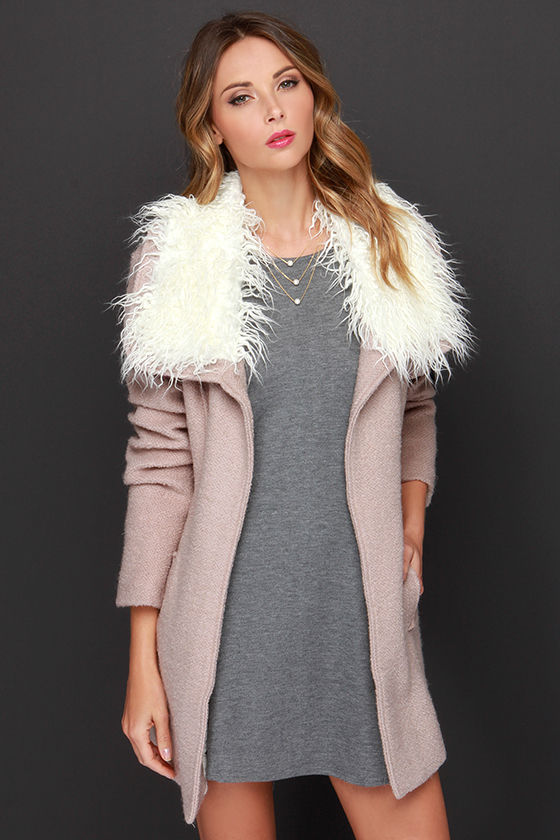 I was very excited when I ordered this coat. When I received it I was pretty disappointed. For an expensive coat I expected more. It looks like a robe. The color is more dull in person. Maybe I am missing something, but the design is impractical (the chest area is exposed) It kind of defeats the purpose of wearing a coat in my opinion.Response from Lulus.com: