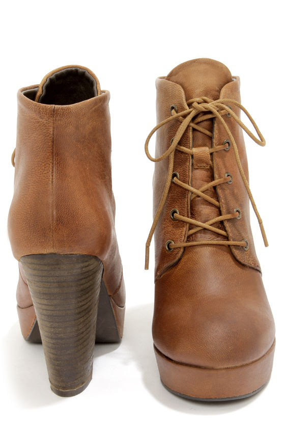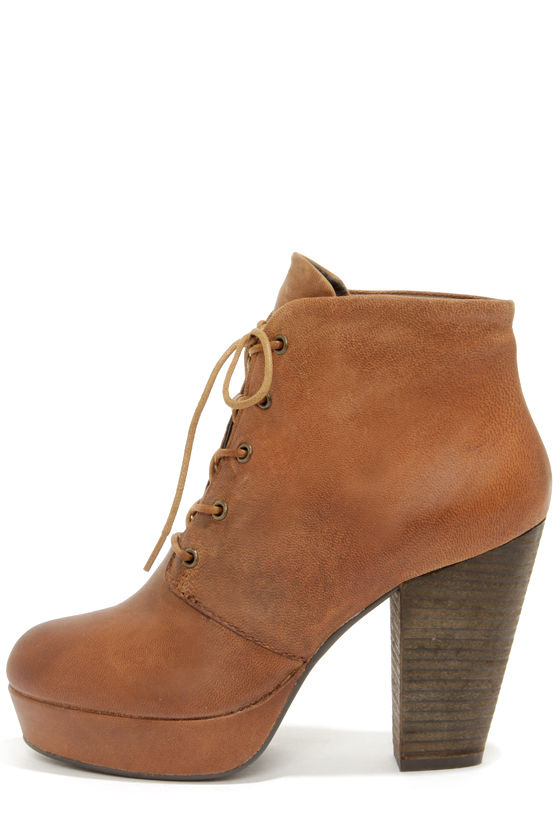 Steve Madden Raspy Cognac Leather High Heel Ankle Boots