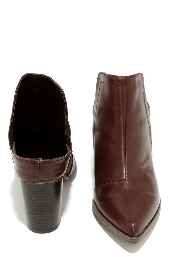 Complete your #OOTD with the totally Insta-worthy Street Chic Brown Pointed Toe Mules! Vegan leather forms a smooth pointed-toe upper that greets a notched collar with elastic gussets at the sides for a perfectly comfortable fit. Open heel back tops a 3" stacked heel (including tip). Cushioned insole. Nonskid felted rubber sole. Available in whole and half sizes. Measurements are for a size 6. All vegan friendly, man made materials.